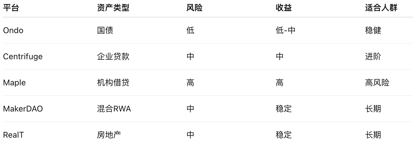 三、2026主流RWA平台对比(重点)