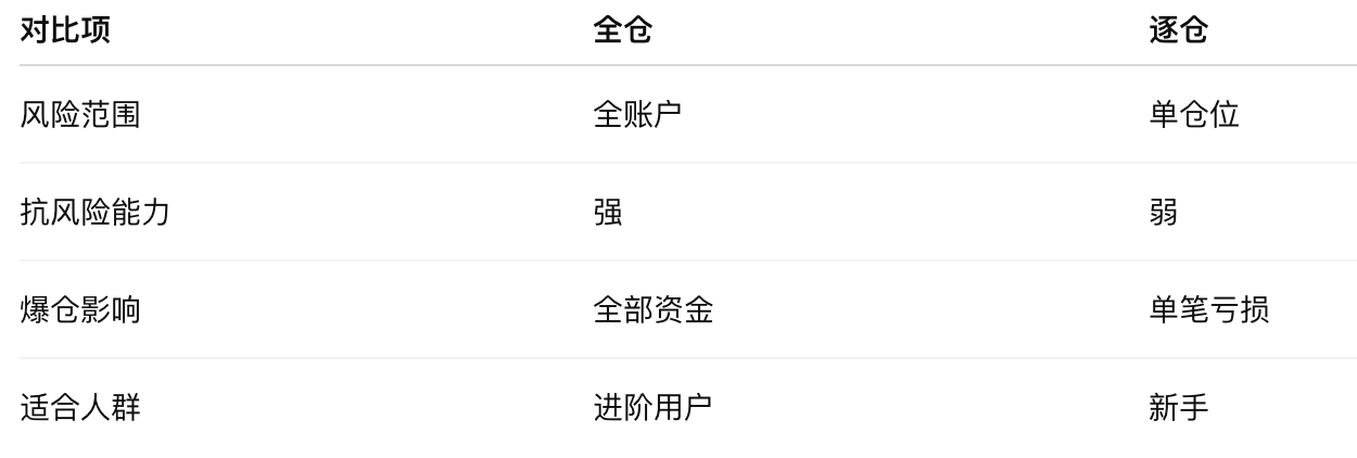 五、全仓 vs 逐仓(核心区别)